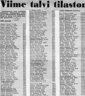 Vuoden -60 500m Suomen tilastossa jo viisi tarmolaista alle 50s.