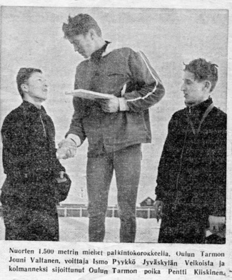 Vuodenvaihteen -61/62 alussa Oulun "sarjakilpailuissa" edesmenneellä Keskuskentän liukkaalla mutta railoisella jäällä luistellaan ahkerasti. Harjoittelun tuloksena Pena täräyttää Tampereella 500m 45,7.